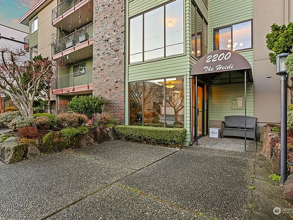 Wonderful Ballard location - nearby popular businesses, 24th for coffee, bakeries and groceries or pop down to Market Street for shopping, farmers market, entertainment and night life. Close to Ballard Locks, Shilshole Marina and Golden Gardens beach. Don't miss this rare opportunity for a bright two-bedroom, one bathroom condo at The Heidi! Spacious top floor corner unit in midcentury building with well managed association and reasonable dues. The unit has nice size bedrooms, updated kitchen and bath, bamboo flooring, balcony, lots of storage and off-street designated parking. Free laundry/utility room directly across the hall! Move right in!