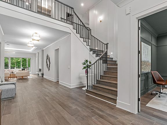 An exquisite custom estate home built by Exeter Building Company. Nestled on 1.32 private acres, this extraordinary residence is one of only ten limited lots in the prestigious Watkins Glen private estates, providing an exclusive and tranquil retreat. As you approach, a gated driveway invites you into your private oasis, flanked by a mature hardwood tree buffer that ensures serenity and seclusion from the street. Soaring ceilings and an abundance of glass, perfectly blending indoor and outdoor living spaces while flooding the home with natural light. Capitalizing on the beauty of the natural surroundings, every window and door captures a beautiful private vista. Ample living and entertaining space with extra room for future pool. 1st floor primary suite; gourmet kitchen with 48'' range and built in fridge and freezer; custom wine display; double islands; Sonos ceiling speakers; control 4 lighting system; covered porch with motorized screens and fireplace; and much more. Must see this beauty in person to appreciate the finish quality and serenity of feeling like you are secluded in nature, while still being centrally located to all the conveniences that Wake Forest has to offer.