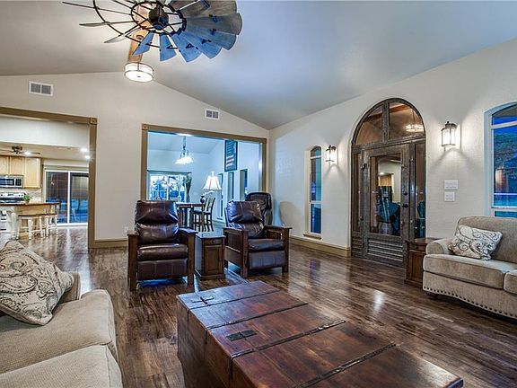 Bring your horses and enjoy tranquil living in this stunning completely updated country home. The home has 3 bedrooms, 2 bath with electric entry gate, fenced and cross fenced, ag exempt, and over 8 acres. This amazing home offers stainless steal appliances, oversized living areas and master bedroom, abundant storage, and built in central vac system. Also included is a 3 stall barn with electric, water, tack room, wash rack, bath with shower, and a washer and dryer. Also includes lighted arena, horse walker, and 3 stall RV parking with electric and water for guests. A fantastic courtyard in the center of the home can be accessed from most rooms. See transaction desk for extensive list of home upgrades.