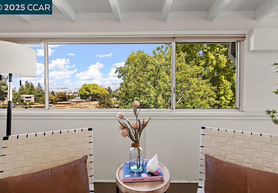 This bright and cheerful Sequoia Wrap end-unit feels like a private tree house, offering relaxing views of Mt. Diablo and an easy indoor–outdoor flow. The partially enclosed wrap is perfect for a home office, art studio, or hobby retreat, while the open side deck invites peaceful morning coffee and glowing evening sunsets. Extra windows in the kitchen and bath fill the home with natural light, and thoughtful updates—smooth ceilings, a step-in shower, newer refrigerator, washer/dryer, and air conditioner—make daily living comfortable and convenient. With no yard to maintain and exterior building care handled for you, you’ll spend less time on chores and more time enjoying everything Rossmoor offers. Residents love the championship golf, popular pickleball courts, swimming, tennis, a top-notch fitness center, movie theater, art and hobby studios, and nearly 200 clubs and organizations. If you’re looking for a welcoming space in an unbeatable setting—where your free time is actually free—this is the one.