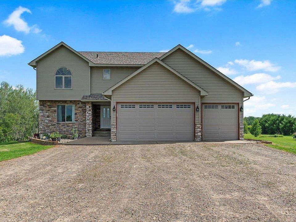 Come check out this beautiful property in Grasston. Home is located on 10 acres.Very spacious home with new carpet and paint. Brand new roof last year. New flooring in living room and office on main level. Home features 2 new walkout sliders with a 3rd slider leading to the sun room off the back. It has an attached 3 car garage with plenty of room for toys in the 36 × 48 pole shed. New slab poured last year. Master bedroom has very large walk in closet. There is another room that could be used as another bedroom if needed.
