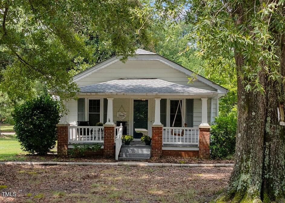 Charming 1930s bungalow on 3/4 acre in rural Wake Forest. Beautifully refreshed interior has gorgeous hardwood floors and LVP in the kitchen, a walk in kitchen pantry and multiple rooms that can be flexibly used as a separate dining room, a home office, a ''man cave'', a bedroom, or a dressing room. It's up to your lifestyle to create the perfect space. It also has a huge yard that's ready to host yard parties, throw balls or frisbees, plant a garden, or simply embrace quiet afternoons on the front porch swing. This move in ready home also has a large shed to store all the tools and equipment you'd put in a garage while keeping the car under the carport that doubles as outdoor room space right by the back porch vintage dinner bell! You can live large, inside and out, in this bungalow.