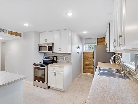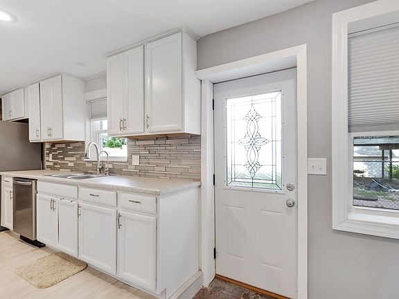 Discover this beautifully updated 3-bedroom home nestled in a serene neighborhood, conveniently located near schools and entertainment. Meticulously maintained, this home boasts kitchen features such as a tiled backsplash, sleek white cabinets, modern countertops, and laminate flooring, complemented by a full suite of stainless steel appliances. A striking reclaimed wood accent wall extends from the kitchen into the expansive living room, which is bathed in natural light from new windows and enhanced by updated lighting. The updated bathroom includes a stylish tiled shower and modern vanity. Best of all, this home is extremely energy efficient! Outside, you'll find charming flower beds and fresh landscaping. The 10x12 shed with permanent siding offers additional storage. The furnace, water heater, and central air unit are all recent upgrades. This home is move-in ready and waiting for you!