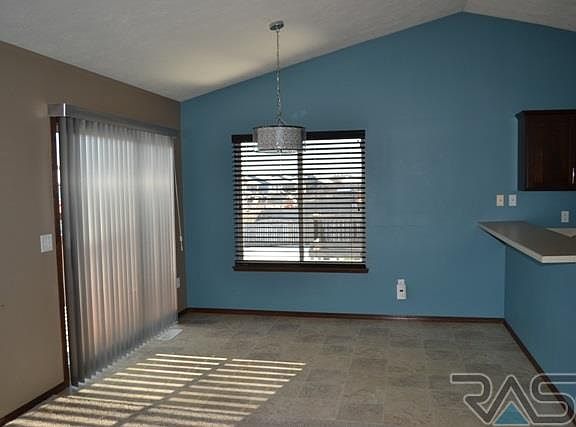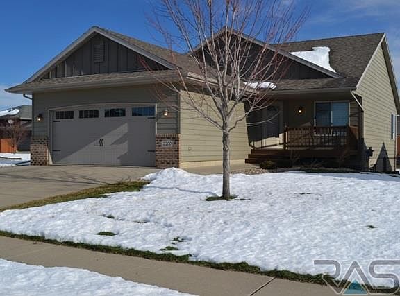 Garden level ranch with 5 bedrooms & 3 baths on a corner lot! One of the few homes in this neighborhood that is located in the Sioux Falls School District. Open concept on the main floor with a great room encompassing a vaulted living room open to the dining & kitchen area as well. The dark cabinets in the kitchen are offset beautifully by the striking stainless steel appliances & there is also the convenience of a breakfast bar & separate pantry. A sliding door from the dining area provides access to the deck overlooking a fenced back yard. Three main floor bedrooms includes the master suite with a large walk-in closet & private bath. Two additional lower level bedrooms plus a family room that feels bright and sunny with a HUGE garden level window. Additional features include solid panel wood doors, today's dark wood tones, concrete landscape edging & an underground sprinkler system. REALTOR owned.