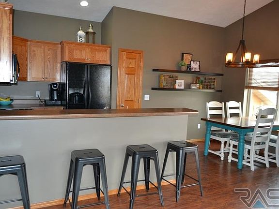 Spectacular West side charmer with looks & beautiful colors right out of a magazine. Situated on a great corner lot with a fenced in yard, this amazing home is sure to please! Stunning wood laminate floors flow throughout the main floor living spaces including the 2 main floor bedrooms. Open floor plan on the main level hosts vaulted ceilings & large windows to allow all the natural light to shine in. Master bedroom complete with huge picture window, a master bathroom & spacious walk-in closet. Lower level family room is massive & is the perfect space to entertain all your friends and family. Impressive bar area with an abundance of cupboards for all your extras! There's even a designated built-in desk. A third bedroom & a gorgeous 3/4 bathroom boasting a tile walk-in shower, tile floor & modern vanity complete the lower level. Garage is sheet rocked and insulated. This home is in the Sioux Falls school district!