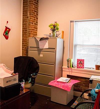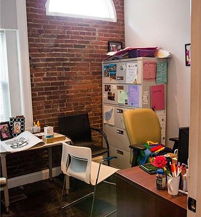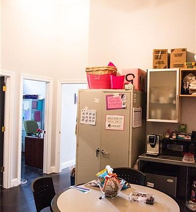 This is a first floor commercial store front with 3 offices, a common area/kitchenette, and a bathroom.