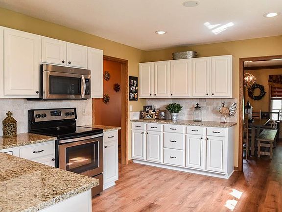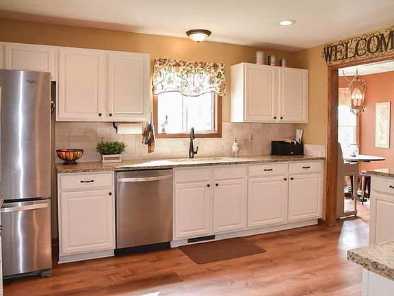 Impeccable 4 bedroom, 2.5 bath colonial with a fenced-in backyard! The brand new kitchen is sure to inspire - white cabinets, granite countertops, stainless steel appliances, tile backsplash, deep pantry and a serving window with a breakfast bar that looks into the great room. Enjoy quality family time in the great room featuring a fireplace and a breakfast nook with a bayed window. Host holiday meals in the formal dining room with a gorgeous chandelier, crown molding and a chair rail. Down the hall, there's a half bath and a laundry room. Brand new flooring throughout main level! Upstairs, there are 4 bedrooms. The master suite offers a private full bath with a jetted tub, dual sinks, stand up shower and a walk-in closet. Bedroom 2 and 3 share a Jack and Jill bathroom with pocket doors. Bedroom 4 is huge with a walk-in closet. Need even more living space!? The finished lower level provides a rec room, office and dry bar with nice cabinetry, a built-in wine rack and bar seating. The fully fenced backyard boasts the perfect entertaining setup! Gather with the family on the stunning covered patio with a vaulted, woodplank ceiling! Oversized 2-car attached garage also has fantastic storage. Come see all this home has to offer!