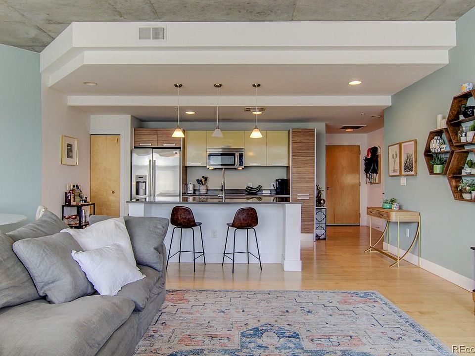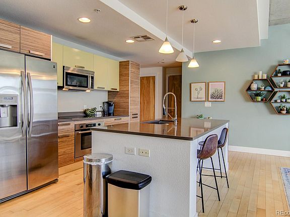 Beautifully built brick & concrete building in Lower Highlands offering an exceptional location for walking (restaurants, bars, retail, millennial bridge, Union Station and LODO). This flat offers high ceilings, natural light with strong southern exposure + city views (don't miss the rooftop mountain & city vistas). Natural maple floors offer a light finish along with modern kitchen cabinetry, stainless steel appliances (Bosch) and white quartz countertops. This residence includes heated garaged parking (with elevator access), stackable washer & dryer and a large south facing patio. Master bedroom includes a Walk-In Closet (custom closet organizers) and master bath (double sinks) + oversized shower (frameless glass and travertine). Floor to ceiling glass (14 Foot Ceilings) adjacent to the exclusive outdoor deck/space. You won't be disappointed + check out the rooftop deck with exceptional MOUNTAIN & CITY Views. This is a solid boutique building with easy access to central Denver & I-25 (+ public transportation) + Popular Restaurants, Bars and Retail nearby! This Brick building would be the perfect investment & place to call home. Call Rick Flanagan w/ Red Chair realty to learn more or to see this property 303-748-0317.