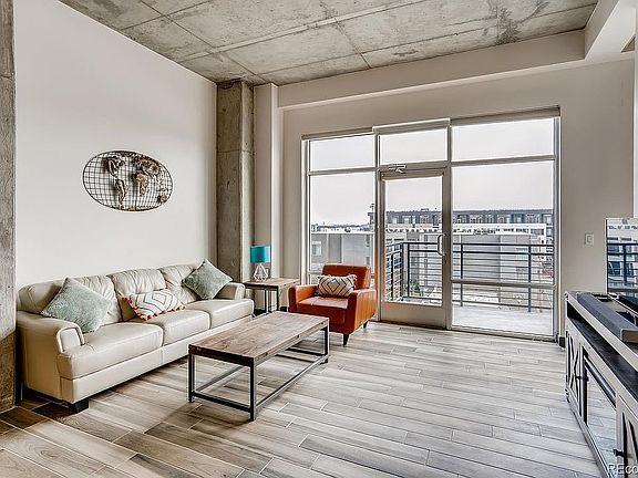 This trendy corner penthouse 2 bed / 2 bath condo is a city living dream. Walking distance from everything in Denver's desirable LoHi. 14' ceilings make the open concept feel incredibly spacious and allows for tons of natural light and offer incredible views of the city. Updated kitchen with stainless steel appliances is open to the family room. Custom metal barn door and concrete ceilings make the space feel industrial chic. Balcony with views from cityscape to mountain tops is a lovely outdoor oasis even from the fourth floor. Laundry closet in unit, two tandem parking spaces in underground garage, garage storage space, and common rooftop deck make city living easy. Find your trendy new home in the heart of it all.