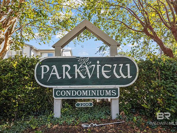 Wonderful location, easy living at an affordable price in Gulf Shores! Ground Floor, NO Steps to navigate. No Short Term Rentals... get to know your community neighbors! This coastal cozy condo has an open floor plan with 2 beds, 2 baths, screened porch & outdoor storage building. 102-C is move-in ready & sold furnished... sleeper sofa, queen & twin beds, breezy screened porch for coffee & afternoon iced tea. This is a great beach getaway for the family! The primary bedroom has a large walk-in closet, second bedroom is spacious with full size closets, second bath is off of the hall along with additional storage/pantry & laundry. Park View is centrally located in Gulf Shores across from the Bodenhamer Recreation Center & Gym which has professional tennis courts, pickleball courts, an indoor heated Olympic size pool, basketball court, playground, skateboard area, walking & biking trails and a dog park. Park View is also within close proximity to the beach, Fort Morgan, churches, the post office, library, civic center, fire department, Waterway Village, restaurants, grocery stores, medical facilities- you name it! Park View is a rent restricted community with a minimum of 6 months, solid owner's association with low dues which include pool, grilling area, bike racks, trash service, pest service, exterior property maintenance & insurance. All the buildings have new roofs and exterior paint. Assigned parking spot conveys. All offers to be written on Baldwin County purchase agreement. Buyer to verify all information during due diligence.
