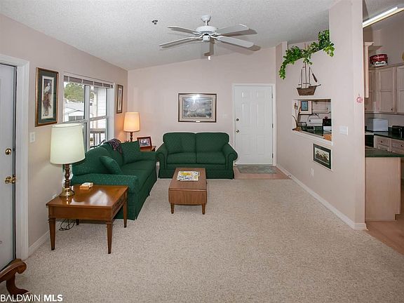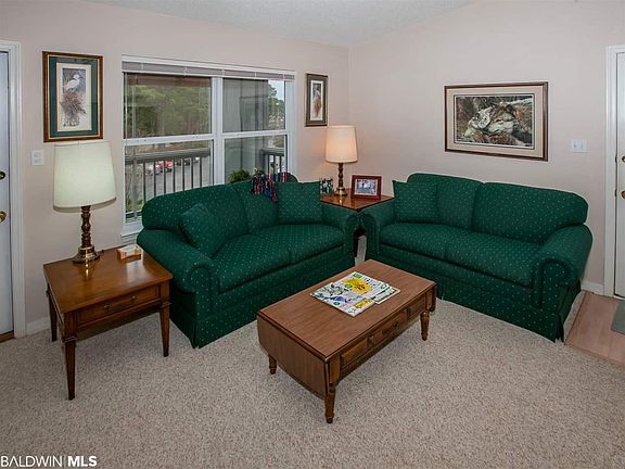 This 3br/2bath is an original owner/never rented condo that was customized during construction. The 3rd bedroom was converted to a second living room with French doors that can also be used as a 3rd bed room. Kitchen, laundry & 2nd living room have custom cabinets & pantry. Upgraded Berber carpet and pad throughout (will clean carpets before closing), wood kitchen floor, cathedral ceilings, custom shower in master bath. Pull down attic ladder for access for extra storage room in master bed closet. , Lazy Boy couch & elec. chair in lvg. rm. Stack washer & dryer, new garbage disposal, New vinyl double pane windows, Custom patio door blinds. Sprinkler system,Trane HVAC is 8 yrs. old on service contract, unit on EMC sensible program, Self managed with low condo fees, Windows face the East and the West for plenty lighting all day. Electric bill ranges from 40-$60+/- a mo. Water bill $25.+/-. Property taxes $409. For anyone looking for a 3br down town Gulf Shores in this price range this is a must see condo!