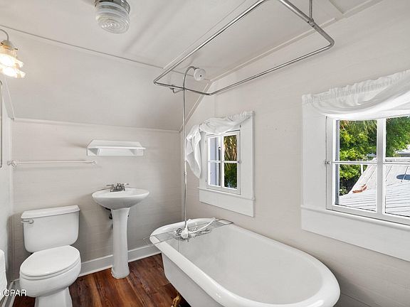 The house has newly painted rooms throughout and new carpet upstairs. The Master Bedroom upstairs has a sunroon that faces South and has an excellent view. Both bathrooms have been remodeled and the upstairs has a claw foot tub. The original garage has been converted to a craft area and laundry center. The Large shed has electricity, and both the shed and the converted garage have individual window unit a/c units. It's only a short stroll on the sidewalk down to Oaks by the Bay Park in St Andrews where excllent dining and awesome shopping await. There is beach access close by and a boat ramp less than 1/2 mile away. Schools are excellent in the area and should you desire to go to the beach it's a short drive to access the gulf of America's most beautiful sparkling white sands and pristine aqua water. A real plus is no flood zone and no HOA at this sanctuary. This Home comes with a 1 year Home Warranty by Old Republic. Come see this amazing property today before it's gone. New Pictures and a 4D Video Tour that's interactive are now updated.