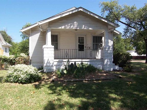 Wonderful Home located in Delano neighborhood. Located just steps away from Friends University and close to Kellogg, restaurants and Towne West. You will be welcomed by the large covered porch. Perfect place to hang a porch swing and enjoy the outdoors. Once inside, you will immediately notice the beauty of the recently refinished hardwood floors in the living room, bedrooms and kitchen! The neutral colors and the wood work make for a warm and cozy feeling. The living room features unique arched doorways and a ornamental fireplace with great decorating space on the mantel. The kitchen has lots of updates and is arranged to please the cook of the house. It has new tile backslash, new cabinets, new counter top, new ceiling fan, dual sink and hardware. No more doing laundry downstairs. You will love the charming, freshly painted, main floor laundry room with polished hardware, new flooring and loads of cabinets for storage. There is even a pantry! The wood work in this home is gorgeous. Notice the linen closet in the hall. The bathroom has nice updates including, tile backslash, new tub, and Porcelain tile flooring. You will like having the mudroom as you come inside the back door. The basement is clean and has a work bench for inside projects. Outside you have a fenced in yard and mature trees for shade. The yard has lots of possibilities and room for a garden. Beautiful Rose of Sharon bushes line the big spacious corner lot. There is room to park lots of cars! The garage is oversized and has lots of storage space and cabinets. This home is move-in ready!