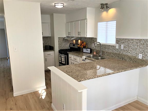 Beautiful two bedroom, two bathroom home in a 55+ Community in Banning California! New Floor, New Paint, New Granite, New vanities, New Porch, New Central AC, New Fixtures! All you need is your furniture!This unique layout offers extreme privacy for both bedrooms from the main portion of the home! Both bedrooms are very large, with large closets! The master has an attached bathroom, as well as another full bath in the hallway.The kitchen has a good amount of counter space, with an open concept, and view into the living room! The kitchen is equipped with a new stainless oven/range, new stainless sink and faucet, as well as a new GRANITE countertop and backsplash!The home has brand new 12.3mm Laminate throughout, and high baseboard. The home also has new paint throughout (color is light swiss coffee).The exterior of the home has new trim and paint!! Sellers just built a patio under the metal awning, so you will have a new covered patio! The car port is very deep as well, and has room for multiple vehicles!