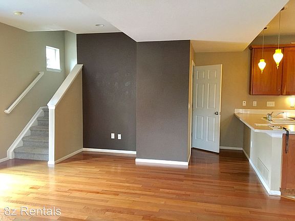 Wonderful Watersong End-Unit Townhome in SE Longmont! - Great layout! Great light! Great upgrades! Open concept kitchen and living space with hardwood floors, gas fireplace, and additional dining area. Oversized kitchen with plenty of counter space and cabinets. Large sliding glass doors open onto a generous deck that faces the green and paths for hiking and biking. Upper level includes master bedroom with high ceilings, master bathroom with double sinks, and walk-in closet. Second bedroom has a private bath and plenty of light. Utility closet with front load washer/dryers on the second level where it should be! Lower level is finished with large recreation room or 3rd bedroom, full bathroom, and plenty of storage. This home has an attached two car garage. Tenant pays all utilities. Pet negotiable. This community has a seasonal pool, is close to Hover, with plenty of shopping and restaurants, hiking and biking trails and Niwot Schools. (RLNE3560171)