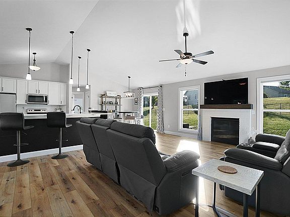 Stunning Modern Home in prime location! This beautifully designed 1.5-year-old residence boasts a striking modern front elevation and an array of upscale amenities. With 1,600 sq. ft. on the main level, this home features 3 bedrooms and 2 bathrooms. The primary suite is complete with private bath featuring double vanity and walk-in closet. The vaulted ceilings in the great room and kitchen create an open, airy feel, perfect for entertaining. The heart of the home is the kitchen, featuring an L-shaped island with granite countertops, stylish tiled backsplash, upgraded cabinetry with crown molding and stainless appliances. The lower level offers potential for additional living space, tailored to your needs. There's also an oversized 2 car-garage, extended patio and large fenced-in back yard. Don’t miss the chance to call this exquisite property home! Located just minutes from Hwy 100 and 47 making this a great spot for commuters. Experience modern living at its finest!