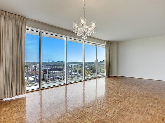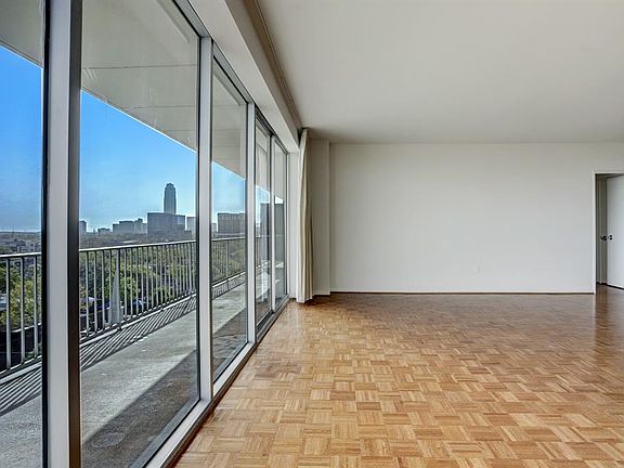 Wonderful 2 bedroom, 2 bath unit located on the 9th floor of the desirable and prestigous Willowick high rise! Floor to ceiling walls of glass open to the gracious balcony that looks to the south and has beautiful unobstructed views! The open floor plan lets you enjoy a living room and dining room combination and a kitchen that looks out to the dining area! The primary bedroom has spacious closets and an en-suite bath with marble counter top! There is also a second bedroom and bath! The kitchen has plenty of counter space and has a oversized storage room! The maintenance fee includes all utilities and basic cable. There is 24 hour security and a doorman. Amenities also include a swimming pool, spa, party room, exercise room, central laundry and beautifully manicured grounds! Located near River Oaks and the Galleria with easy access to downtown, the medical center and freeway systems! Walking distance to Central Market and Highland Village shopping & dining!