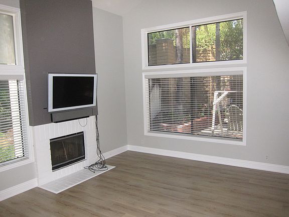 Bright, beautiful, upgraded townhouse has brand new wide plank distressed floors, new paint, gourmet kitchen with granite and brand new stainless steel appliances. Entry and living room have vaulted ceilings and is bright and spacious. Granite countertops in all bathrooms and custom fixtures throughout. Private end unit has security system, spacious front and backyard with full driveway to park 2 SUVs. Pool, Spa, clubhouse, tennis and basketball courts are a short distance away. Convenient location is close to 5 & 405 fwy and 241 toll road, shopping, entertainment and more!