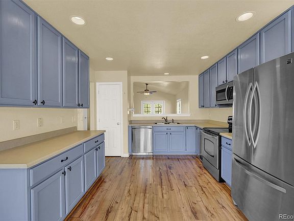 There is more than meets the eye to this great ranch in Parker and that is saying a lot. Backing up to trails and green space with the playground within sight this great Parker home opens itself up to relaxing cocktail hours on the back deck or in the yard. Watch beautiful sunsets or enjoy the snow gently falling. Whatever you prefer you have no back neighbors to stare at. Step inside and you will find a spacious kitchen/dining area with stainless steel appliances including a fabulous bar fridge. The large living area looking out onto the green space can feel wide open in Summer or cozy in the winter months with the gas fireplace. The main floor includes 3 good sized bedrooms, including a master suite with a large tub and separate shower. Head down to the basement and you will find a in law suite or availability for additional income. The basement features a living room, full kitchen, bathroom and bedroom. Location, location plus the additional basement bonus makes this a great choice when looking for your new home in Parker.