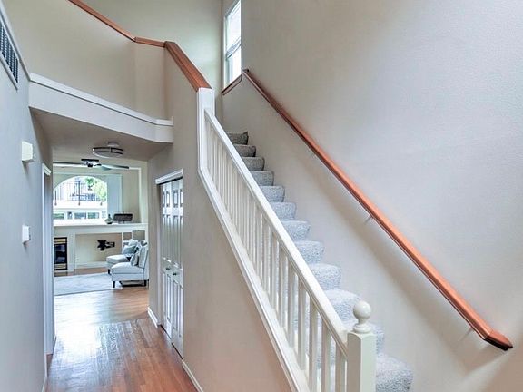 Amazing corner unit features dramatic entry w hardwood floor in entry through great room and Kitchen. A light and bright great room overlooking private backyard. Gourmet kitchen with SS appliances & gas range. A good size back yard with sliding door to patio area. Whole house equipped with remote control blinds. Come with air condition. Less stairs to climb since the primary bedroom in the main floor with a 5 piece primary bath and nice walk-in closet. 2nd bedroom can easily accommodating king size bed and furnitures. 3rd bedroom upstairs has great view of the backyard & would make an outstanding home office or a spacious guest room able to accommodating king size bed easily . Large and high windows bring in a lot of natural light through out the house. Being a corner unit, the front yard, although technically a HOA space is practically private.