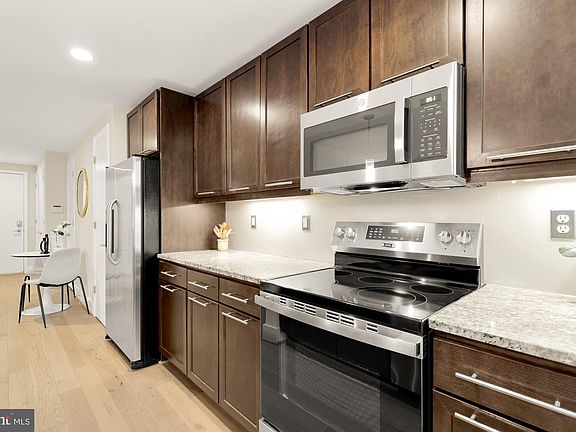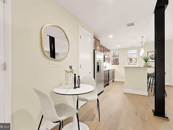 This bright and airy corner-unit condo offers desirable south and west exposures, filling the space with natural light throughout the day. The open floor plan is enhanced by elegant white oak floors, while the stylish island kitchen features a 7-foot breakfast bar, GE stainless steel appliances—including a built-in microwave—and a double sink for added convenience. Large south-facing Juliette balcony doors in the main living area provide an inviting space with ample room for both relaxing and dining. Thoughtfully designed storage includes a custom ELFA-outfitted pantry, coat closet, laundry closet, and a spacious walk-in bedroom closet, all maximizing organization. The generously sized dual-entry bathroom features a tub and shower combination for added comfort. Located approximately half a mile from the Shaw Metro (Green/Yellow lines) and with easy access to multiple bus routes, this home is ideally situated for city living. Grocery options, including the upcoming Whole Foods on Florida Ave NW, are conveniently close, along with popular dining destinations like The Red Hen and Big Bear Café. Renowned entertainment venues such as the Howard Theatre and 9:30 Club are also within easy reach. Don't miss this opportunity to own a stunning, light-filled home in one of D.C.'s most vibrant neighborhoods!