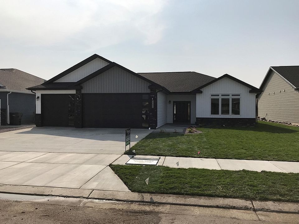 This home is being built on one of the best homesites' in Lakewood 9th Addition and Located ON THE GOLF COURSE with spectacular views of Ft. Lincoln and surrounding hills in the distance!! This one level living home offers over 1680 Sq. Ft with 3 Bedrooms, 2 bathrooms and a 3 stall garage with over 800 Sq. Ft.. If you like open concept, you will love the open concept of the living room, dining room, and awesome kitchen layout this home offers with 9' ceiling height!! . The kitchen features Whirlpool Black Stainless Steel appliances, CUSTOM MADE cabinets, large wet island, cabinet hardware and walk-in pantry. Steps away enjoy the outdoors under a large covered patio!! The master suite offers a HUGE walk in closet, master bath with dual vanity, and Walk-IN shower! The 3 stall garage is fully insulated and includes floor drains, hot/cold water and heater rough-in. PLUS, this home also includes, vinyl plank flooring, recessed lighting and more.!! Save money on utility bills with Simonton Casement windows and a 96% Efficient Gas Furnace & 13 SEER AC Unit. Walking trails, golf course, Wellness Center and more nearby!! Held at sheet rock stage. buyer to make all interior selections at our award winning Design Studio!! Contact a Realtor today!! . Optional finished landscaping available.