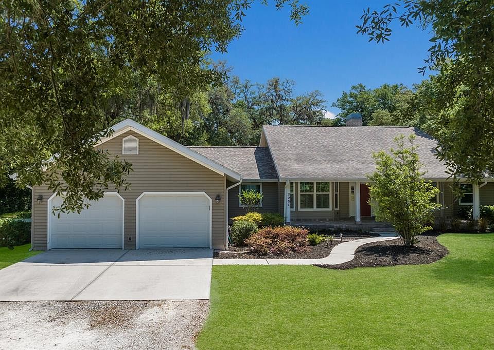A rare opportunity to own over two mature landscaped acres in this one owner three-bedroom home with NO DEED RESTRICTIONS or HOA and giving you a feel of the country but yet the convenience of being close to shopping, restaurants and interstate access for an easier work commute there is nothing like this one the market. As you enter the house you are greeted by the formal dining room, which is open to the formal living room with a wood burned brick fireplace and with a captivating window view of an impeccable Screened swimming pool as well as the remodeled kitchen (Stainless Steel appliances and Granite Countertops, and shaker cabinets.) This setup is perfectly suited to entertaining guests with a pass through from kitchen to spotless living area. Split floor plan allows guests their own end of the home with 2 bedrooms complete with guest/pool bath. The luxurious master suite with dual walk-in closets and an ensuite bathroom with dual sinks, garden tub and upgraded separate shower. Florida private living with the huge back porch and screened pool home overlooking the beautiful wooded rear yard. Hook up for generator for the home. Plenty of space: bring your RV, boat, or any of your other toys!! RV outlet on side of home. The 3rd garage/barn is a great workshop located behind the main home that has electricity connected. Also, behind all this fenced rear magnificently landscaping back yard and Staircase Playhouse is plenty of secluded wooded trails to explore. IN TOWN seconds from I 75 minutes from beaches. Your chance to own the most sought-after neighborhood that feels like country but in the middle of everything. Call today. Room Feature: Linen Closet In Bath (Primary Bathroom).