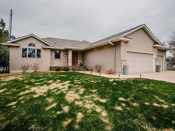 primary bedroom has newly remodeled ensuite bath with quartz countertops and walk-in closet. A 3-sided fireplace welcomes you into the open living space. Kitchen has large island with new appliances. A deck off of the dining/kitchen area overlooks large backyard and lovely walkout patio area. Main floor bathroom updated with quartz countertops. Oak floors throughout the home. Lower level has 2 bedrooms or office space as well as bar area to entertain. Attached 3-stall garage is heated, has floor drain, and hot and cold water. New roof in 2021! Don't miss out on this charming 4 bed, 3 bath home!