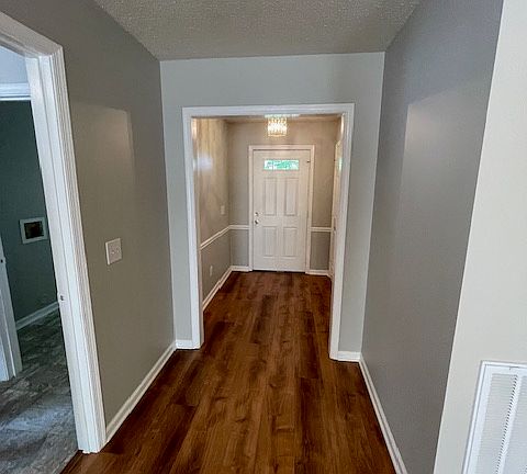 Cozy ranch in Adams Farm/Remington Trace with 3 bedroooms and 1 1/2 baths. Ithas been freshly painted with new vinyl plank and carpet flooring. There is a large laundry room off of the kitchen. A stone patio has a treed buffer for privacy. Available upon completing the approval process. This is a no smoking/no pet property. Renter is responsible for all utiities and yard maintenance. Property is fueld by a heatpump and is all electric.