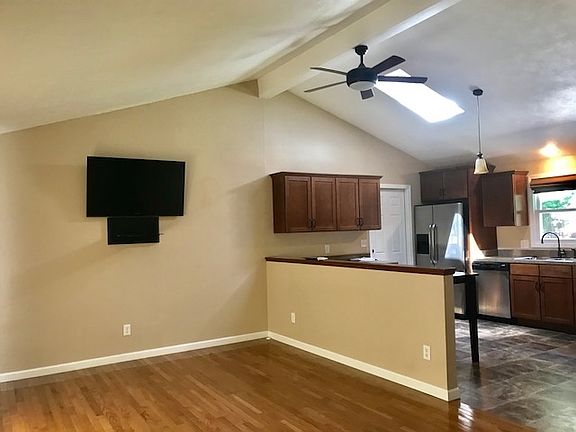 Almost everything new since 2011. The 3 bedroom 1 bath has been extensively remodeled. Updates include new roof, driveway, bathroom, kitchen, water heater, central A/C, windows, interior and exterior doors, vinyl siding, garage door and opener, all flooring including hardwood in living and bedrooms, keyless entry and added insulation in the attic for efficiency. Fenced back yard with patio. All appliances remain. Wall mounted TV in living room remains.