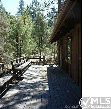 Come see this rare easy access single level cabin close to the Village! A level driveway leads to a mountain home with all living space on one level and under the home two storage rooms with built-in shelving and laundry. The green belt behind the home and vacant lot next door provide privacy and a real forest feel. Depending upon how much sun you want you can sit out on the front deck and enjoy the swing or sit out on the rear deck and fire up the barbecue and enjoy the peace and quiet. A nice bonus is a greenhouse in the back yard and the front & back yards are landscaped and well-cared for. Inside you'll find lovely wood on the walls and ceiling along with beams, skylights, and a rustic brick hearth. The kitchen counters have been upgraded to granite and there is a slider off the eating area for easy access to the back deck. The bedrooms are cozy with wood all around and the full bath has a door between the tub and the rest of the bathroom for privacy and convenience. In the first bedroom closet is a door in the floor that leads down to the laundry area. Could be an excellent laundry chute or use the ladder for a fun way to get below! Flooring is newer easy care wood grain laminate and the master bedroom has a walk-in closet. The interior has fresh premium sealant on the walls & the exterior has recently been stained with premium stain. The furnishings and appliances (inc window A/C) are included so this charming home is ready for you to settle right in. Come see it soon!