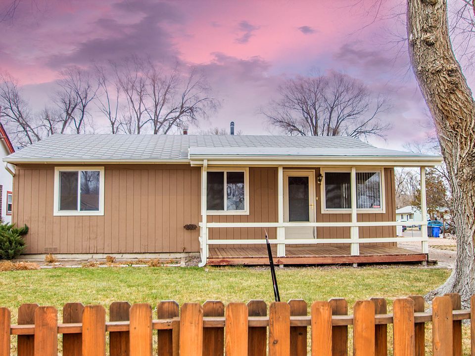 This charming rancher is located on a large corner lot with mature trees to provide shade* This home is located close to shopping, dining, I-25, schools, and a college* There is a large covered front porch that looks out to the front yard with mature trees that provide shade* As you step inside from the covered front porch you will be greeted with the Family Room that features large windows that allow natural light into the home* The Dining Room and Kitchen are open to each other with beautiful laminate wood floors, a walk-out, and lots of cabinet and countertop space* There are 3 Bedrooms and a full Bath* The Backyard has a covered patio, over-sized 2 car garage with a large area to make a workshop, and plenty of room for RV storage and parking* The home has a new class 4 roof which may entitle the buyer to a substantial insurance discount