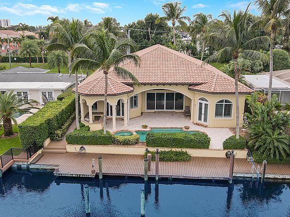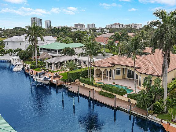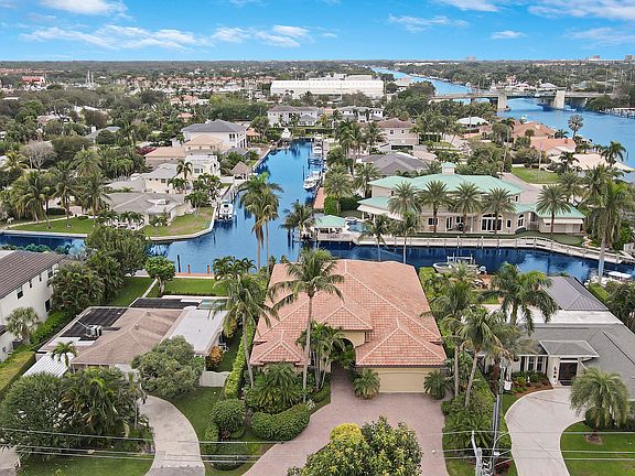 Offering over 4700 sq ft of indoor/outdoor living space, this WATERFRONT single family gem is sure to check all the boxes! Situated on an oversized canal lot with intracoastal & ocean access. this centrally located 3 bedroom + office, 3.5 bath home offers upgrades galore! The freshly painted interior is highlighted by marble& wood flooring, plantation shutters, interior wet bar with icemaker & wine chiller, top of the line appliances, California Closets, dual a/c architecturally pleasing features like 10' arched interior doors & extra wide baseboards. Florida living at it's finest with 75' of maintenance free dock, gas heated pool, summer kitchen, outdoor shower, A/C garage with tiled floor. CBS construction, barrel tile roof, full impact windows, whole house generator completes this perfect tropical sanctuary. See it today!