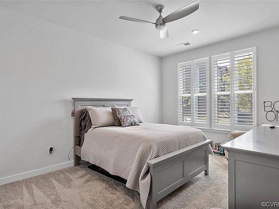 Welcome to one of the few townhomes with a private backyard and balcony! The first floor boasts a spacious bedroom with private bathroom, as well as a separate laundry space and entry to the 2-car garage. Head upstairs and you’ll find a bright and airy living room that opens up to the patio, complete with gas fireplace and ceiling fan, perfect for enjoyment year round! Flowing through to the kitchen you’ll notice granite countertops, a large center island that seats 4, double wall ovens, a gas cooktop, a white tile backsplash, and upgraded cabinetry. Other luxuries include wide engineered plank flooring, a security system, and plantation shutters that elevate the feel of each floor, allowing natural light to infuse every room of the house. The 3rd level features a spacious primary bedroom w/ luxurious carpet, large walk in closet, beautiful bathroom with dual vanity, quartz countertops and a tiled shower! Great location within the community and an easy walk to the clubhouse. Close proximity to shopping, dining, WestChester Commons, Powhite and Rt 288!