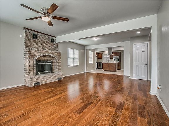 Welcome home! Move in ready 4 bed, 2 bath remodeled house on corner lot. Large open living area and kitchen great for entertaining includes new flooring throughout Completely updated kitchen includes new stainless appliances, new cabinetry and solid surface countertops. Refrigerator, washer and dryer are included with the home. The home also has new windows. The large detached garage has extra storage space and garage door opener. Close to downtown OKC, Military Park, shopping, and entertainment.