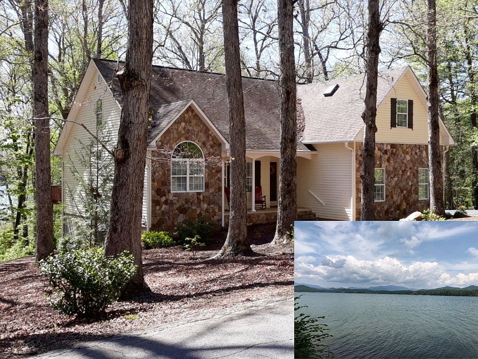 Terrific traditional 4BD/3BA home in one of Hiawassee's premier neighborhoods. All wooded property with seasonal views of Lake Chatuge. This home features open floor plan with great room, fireplace, open kitchen with high end stainless appliances. Large screened porch and large open deck to enjoy the outdoors. Has 2 car garage at main level and a second oversize 2 car garage in the unfinished full basement area. The upstairs has large over-sized bedroom and a 3rd full bath, there is also a large unfinished attic space that could be finished if one needs more space on the upper level. Also, has 1/20 interest in lake access lot on Crescent Drive within easy walking distance of home.