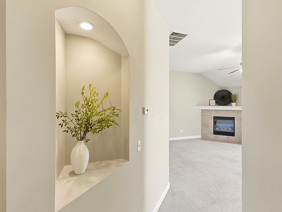 Gas log fireplaceSplit-bedroom floor planNewer carpet and paintStainless steel refrigeratorUpgraded cabinetsFresh landscapingEn suite bathroom