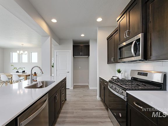 Mesa MODEL| Blackrock Homes. Move-in Ready! BRAND NEW 4 bedroom home that is FULLY FENCED AND LANDSCAPED- $7500 FREE upgrade! Premium location in SE Boise just min. away from Micron, Interstate, Simplot Sports Complex, Ridge to Rivers Trails. Community park w/basketball court, playground & open space. New designer interior packages -All quartz countertops (No cheap laminate), primary bath w/tile floors & shower, all hardwood (lvp) on first floor. CAN’T FIND A BETTER LOCATION than Moxie Ridge! FINAL PHASE -HURRY- WON'T LAST with this CLOSE OUT PRICING! FINAL 5 HOMES IN NEIGHBORHOOD - NO MORE HOMES WILL BE BUILT! *photos not of actual home but of same interior selections. Buyer to verify all