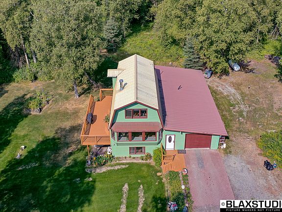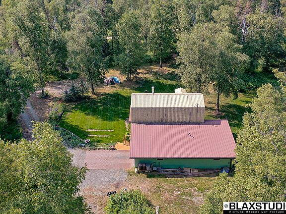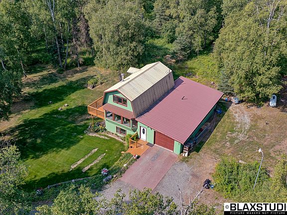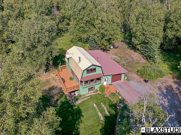 Great piece of private Alaska, enjoy your privacy on your own 5 Acres. Close commute right off Fairview Loop and nice deep garage with your own shop area pick your own strawberries and raspberries, metal roof and cement sidings!