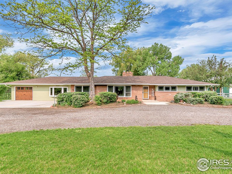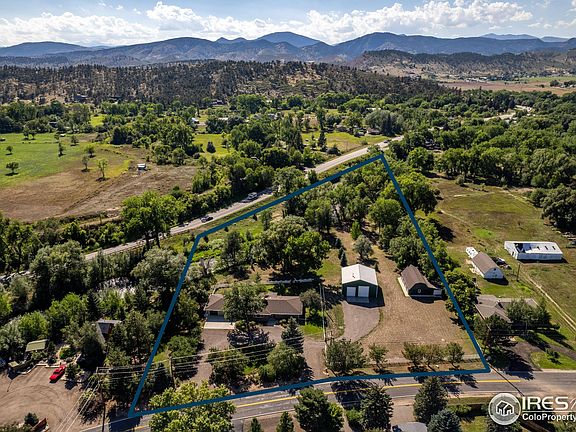 Must see! Beautiful 4 bedroom 2 bath ranch on over 4.5 acres with, Big Thompson River running through it. Bring your horses and your toys with plenty of room for everything. Gorgeous views with your own fishing and swimming holes. Complete with horse barn/loafing shed and 40x40 shop with its own separate bathroom and with 9,000 lb car lift included!