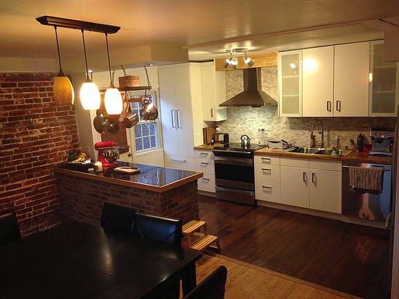 Wonderful totally renovated three bedroom, two and a half bath twin with an oversized one car attached garage located close to everything! Absolutely a must see...with an open interior of a New York or Philly loft! Enter through the new front door into a large living room with a lovely newly refinished brick framed wood fireplace and snug enclosed porch with a wood stove, new tile floor and sliders to fenced in yard. Exposed brick wall in dining room with a bay window and a new chef's kitchen with island, mini-subway stone backsplash, double sink and butcher block counters and exit to a private porch. Large master bedroom with an updated full bath. Two additional bedrooms, an updated hall bath and custom hall closet with a second floor laundry. Finished basement with a family room, new laminate floor, half bath and attached oversized one car garage with newly seal locked walls and floor. Garage and additional private parking are accessed through private alley behind the house. Refinished hardwood floors throughout the house, new carpet on the second floor, new roof, new hot water heater, new central air, new driveway asphalt...cute as cute can be and ready for new owners!