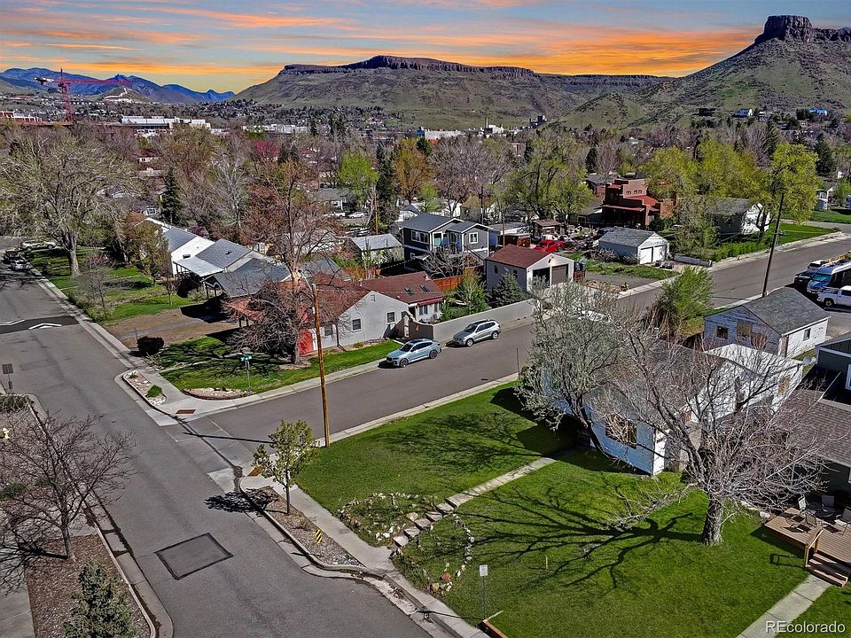 VIEWS, views and more views!!! VERY RARE in-town Golden property with spectacular, unobstructed, west-facing foothills, open space and golf course views. AND, equally amazing views of both North Table, South Table, and Castle Rock to the north and east. Build your dream home OR renovate/expand existing home on this 7500 sf corner property. Sit on your front porch or upper deck and watch the sun set over the foothills; then turn your chair around and watch the last rays of sunlight gild the mesas and Castle Rock. Strong Investment Potential! Recent and active $2.5M+ new construction on this block and next along Illinois Street supports long-term value and growth. Or renovate and/or expand the “blank slate” existing structure and enjoy $2.5M+ views and amenities for less! Property is elevated yet has flat building area, paved alley access, and is zoned for a single family home (with or without an ADU) up to approximately 4700 sf. Don’t miss your chance to live the Golden lifestyle- walk one of the nearby trails with your morning coffee, or head to everything historic downtown Golden has to offer: Colorado School of Mines, Clear Creek, restaurants, shopping, Miners Alley Theatre, festivals, farmer’s markets and so much more! Buyer and Buyer’s agent are responsible for verifying any and all information, to include but not limited to, measurements, zoning, schools etc. House on property is not habitable in current state. Property is being sold As-Is. Due to property condition, seller is only considering cash terms.