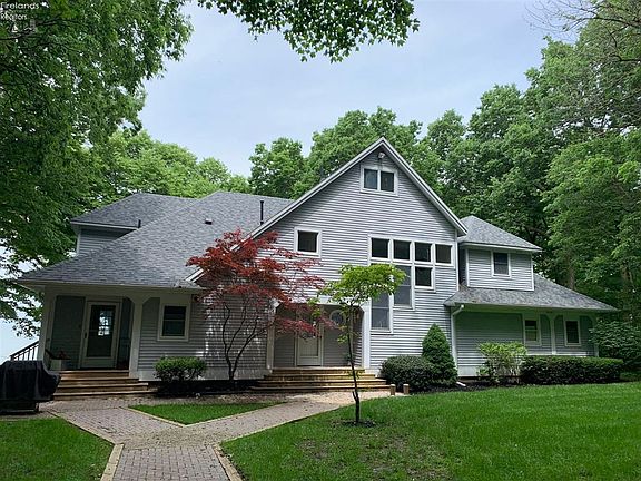 Lakefront South Bass Island (Put in Bay) located on a magnificent, wooded, private homesite. This custom build home is designed to accommodate large groups of family and friends comfortably! You will be dazzled by the ever changing sunsets and foliage while sitting on the full length porch with partial glass/screen enclosures. Truly one of a kind, in a one of a kind location. The separate two bath guesthouse onsite has Murphy Beds sleeps 4. The two car detached garage will keep your Island car and a golf cart secure. This island home will have your heart from the moment you see it!