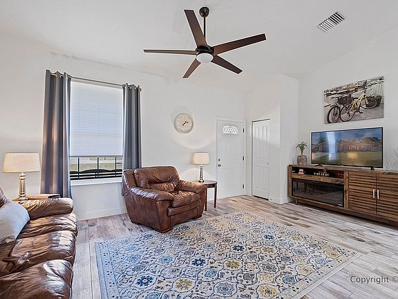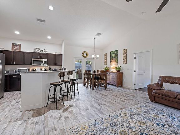 Approaching this home you will notice new gutters and fresh landscape bedding. As you enter you will be greeted by tall vaulted ceilings, new ceiling fans, new window treatments and porcelain wood-grain tile. The open concept main living area has french doors leading to the back porch. The back porch is perfect for your morning coffee or your evening drink. The kitchen boasts granite countertops, stainless steel appliances, and more. The primary bedroom situated on the right of the home is large and features laminate wood flooring, a tray ceiling, walk-in closets, and a gorgeous walk-in shower. This en suite will make you feel like you have your own little oasis at home. The split floor plan places the remaining bedrooms on the left of the home. The laundry room is located in the hallway leading to the other bedrooms. The laundry room has a laundry sink and plenty of room for folding or adding a small refrigerator. The first two large bedrooms on the left of the home have a guest bathroom to share. Updated bathrooms with beautiful countertops and nice vanities as the house was built in 2019. The two large bedrooms towards the back of the home have a Jack and Jill bathroom. The way this home is situated you can utilize one of the bedrooms as an in home office or even turn the back of the home into its own guest quarters. The yard of this home is semi fenced and has room for a pool if you choose to add one. Some extras of this home are the whole house water filter, an emptied septic in January of 2021, a 30A RV outlet installed outside and wifi ready garage door opener.