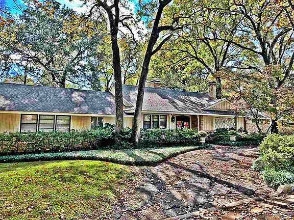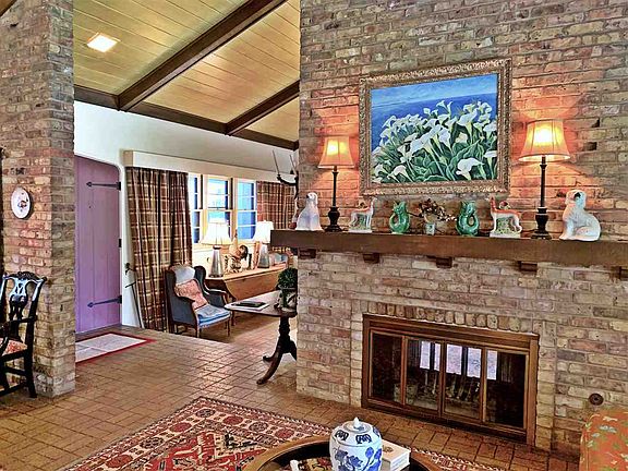 Filled with character, this mid century ranch style home is located on two lots with beautiful mature trees and lush landscaping. Many unique features are found throughout the home including the double sided brick fireplace, brick accent walls, multiple living areas, brick floors, custom built-in cabinets in almost every room and ample closet space. Open concept living that opens to a large back porch make this home perfect for entertaining. It is rare that you find a home that is better left alone than completely remodeled but with so much custom detail and unique architectural features this is one of those homes.