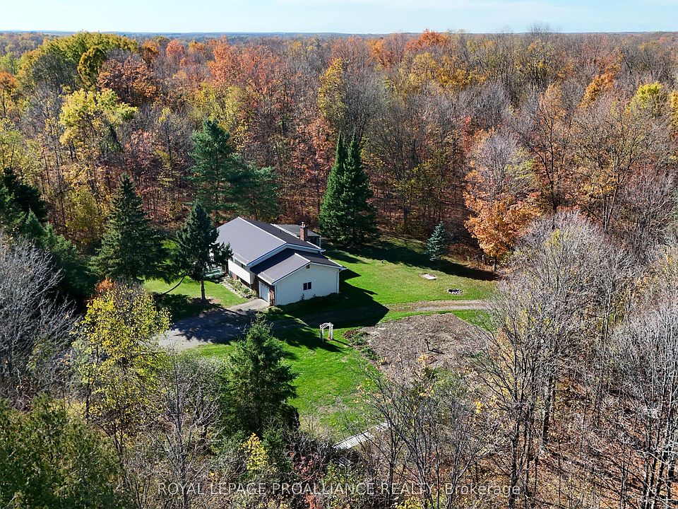 Tucked away on scenic Moneymore Rd, just 20 minutes north of Hwy 401 between Belleville and Napanee, this 19-acre rural retreat offers the perfect balance of privacy, outdoor adventure, and convenience. Surrounded by lakes, rivers, and forest, it's an ideal location for hobby farmers, nature enthusiasts, or anyone dreaming of a peaceful lifestyle with easy access to town. The. land is rich with opportunity - 19 acres of mixed forest including Ironwood, Pine, Sugar Maples crisscrossed with trails and teeming with wildlife. A modest sugar shack sits tucked among the trees, where the current owner tapped approximately 50 maples - imagine producing your own syrup each spring, Whether you're looking to hunt, hike, tap, or simply explore, the property delivers a four-season playground. A 30'x50' detached outbuilding with hydro provides ample space for a workshop, equipment storage, or future barn conversion. Multiple additional sheds offer flexibility for tools, firewood, or small livestock. The raised bungalow features 3 bedrooms and 2 full baths, with a spacious eat-in kitchen perfect for family meals or entertaining. Step outside onto the covered back deck and take in the peaceful country views. Downstairs, the partially finished lower level offers a separate entrance walk-up to the attached garage - ideal for an in-law suite or simply a practical mudroom for kicking off your boots. The home's heating system is a wood/oil forced air combination - gather your own firewood and eliminate heating bills entirely, or let the oil system take over when needed. There's also potential to convert to propane if preferred. Located less than 2km from a well-connected trail network, the property is a dream for snowmobilers, ATV riders, and anyone who loves to explore. Recent updates in 2024 include a new metal roof, water softener, and pressure tank - giving you a solid start for building your ideal rural lifestyle. BONUS: Bell Fibe is available!