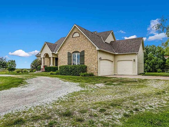 What an amazing property!! 5 bed 3 bath and 3,700 sq ft of living space all set on 5 acres. This home has a roof that is a year old and is hail resistant (complete with new guttering and a transferable warranty). The home's exterior has limestone and concrete siding. The trim on the house was painted 2 years ago. There is new gravel on the driveway. There is a 3 car garage with one side being a pass through. There is extra space above the ceilings for possible future development. There are new light fixtures and ceiling fans throughout the home and new paint throughout the home except in one of the main level extra bedrooms. There is new carpet and pad in all of the bedrooms of the home. It has new hardwood floors throughout and a new sink in the kitchen, not to mention new granite counter tops. The home has new tile in the main floor bath and new carpet in the Master walk in closet. the home has two gas fireplaces, one being a two way fireplace shared by the master bedroom and the living room. There are new treads on the stairs leading to the basement, new laminate, carpet and pad in the basement. Basement has a sump lift that is 4 months old and is separate of the sump pump. The basement has 1 bedroom, an office (that could be another bedroom) and a bonus room. The basement also has approximately 300 sq ft of storage and a fantastic bar area complete with granite counter tops to match kitchen and separate sink and fridge. There is a walkout in the basement that leads to a spacious back yard. there are many tress and shrubs on the property. there is a pathway of 2" flag stones that lead to a backyard oasis...a two level deck with several areas for seating, a fire pit, a pergola and retractable outdoor umbrellas. Part of the lawn has a sprinkler system on it and there is a lagoon that has been well maintained (free of trees and plants). Minutes from a hospital, a fire station, a YMCA and minutes from shopping and restaurants. All items in the house are negotiable (pool table, 80'" TV, fridges, tables, chairs, etc). Owners have a lot of pride of ownership and have taken the time and spent money to make sure next owners don't have anything to do but to move in and enjoy! Call to schedule your private showing today before this property is gone!!!