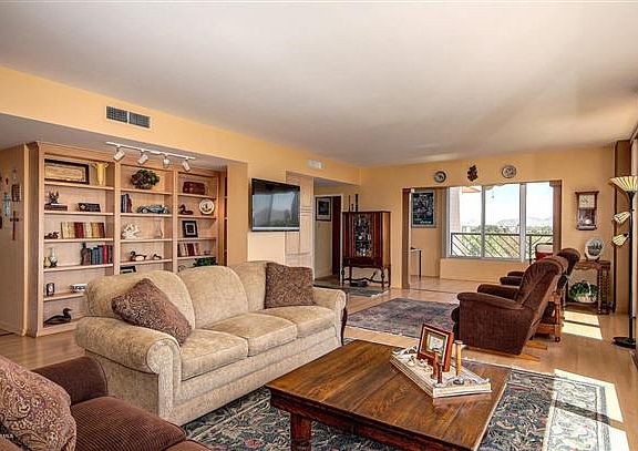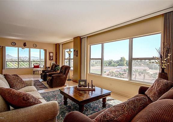 Walls of glass invite you into this fabulously beautiful home. Incredibly elegant unit with unparalleled 180 degree views of city lights and mountains as far as the eye can see. Features include built in entertainment center, wet bar, sun room or den with wrap around windows, tons of storage and an unbeatable in town location. Steps to the light rail which goes directly to terminal 4, steps to Heard Museum and every imaginable cultural experience. 24 hour doormen,elevators,secure underground parking,heated pool,workout room. Rooftop entertaining area with kitchen,terrace and forever views. This is almost too good to be true. This is a coop not a condo.