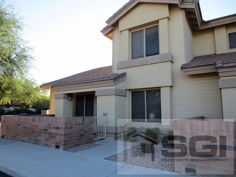 Fantastic Chandler condo has updated cabinets, tile flooring, and more! Perfect roommate set up with two master bedrooms (one upstairs and one downstairs) each with large closets & full bathrooms! Open floor plan with high ceilings & all appliances including washer & dryer. This end unit features a spacious front porch with plenty of room for barbecuing and having people over. All this in a relaxing quiet community which has a pool & spa. Close to restaurants, schools, freeways and shopping! **ASK HOW YOU CAN EARN 1200 A YEAR, JUST BY RENTING THIS HOME Feel free to visit our website at: www.sgipropertymanagement.com** Lessee to verify all information 12 month minimum