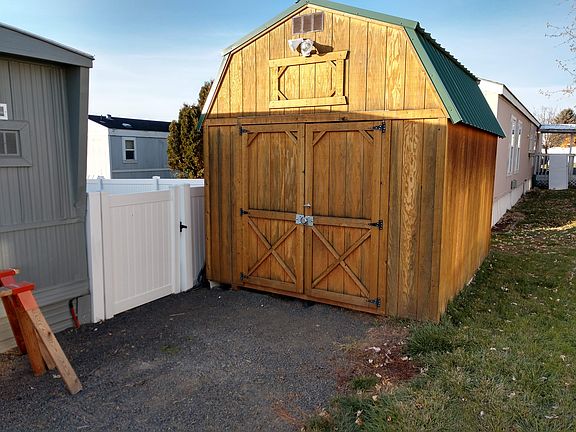 This single wide manufactured home has R-13 insulated skirting, a 3 year old 16 seer Coleman heat pump. Vinyl Windows all the way around. The inside has been completely updated with sheet rock,outlets trim and doors not to exclude new cabinets in the kitchen and a remodeled bathroom with a jetted tub. The shop is 10X12 insulated and has power Air Conditioning loft storage and a nice work bench. Back yard has a 5 foot vinyl fence for privacy and pets or children back door has a small dog door installed. Entire yard has a sprinkler system, serving a large lot. House also has a 4 camera security camera system and comcast alarm system. Living room is wired with a surround sound system. Quiet and safe neighborhood park owner is putting in a gym for the community along with a community center for our use.